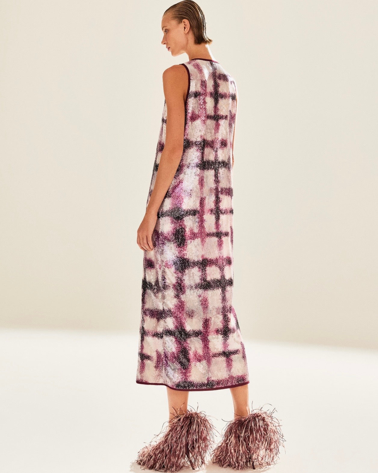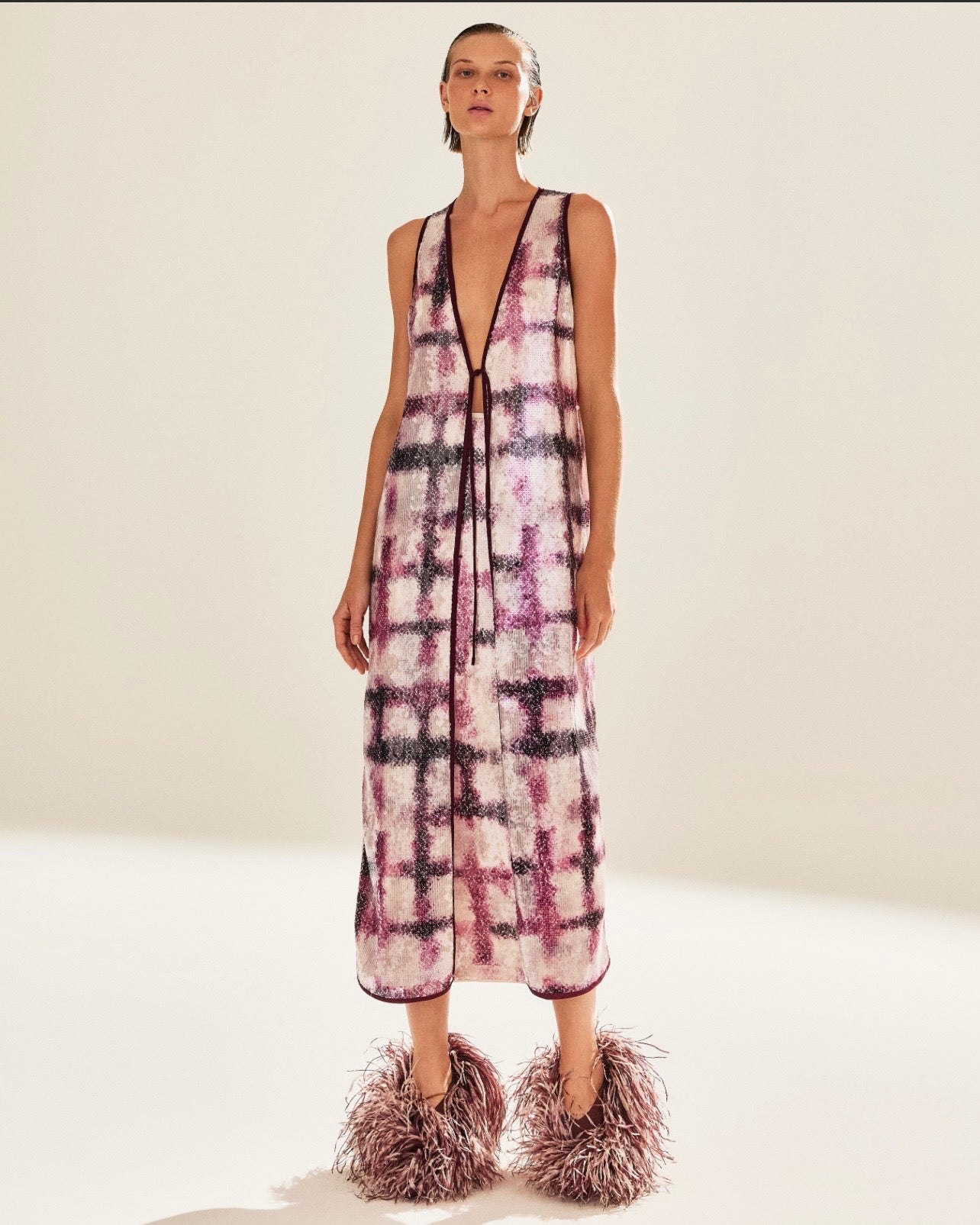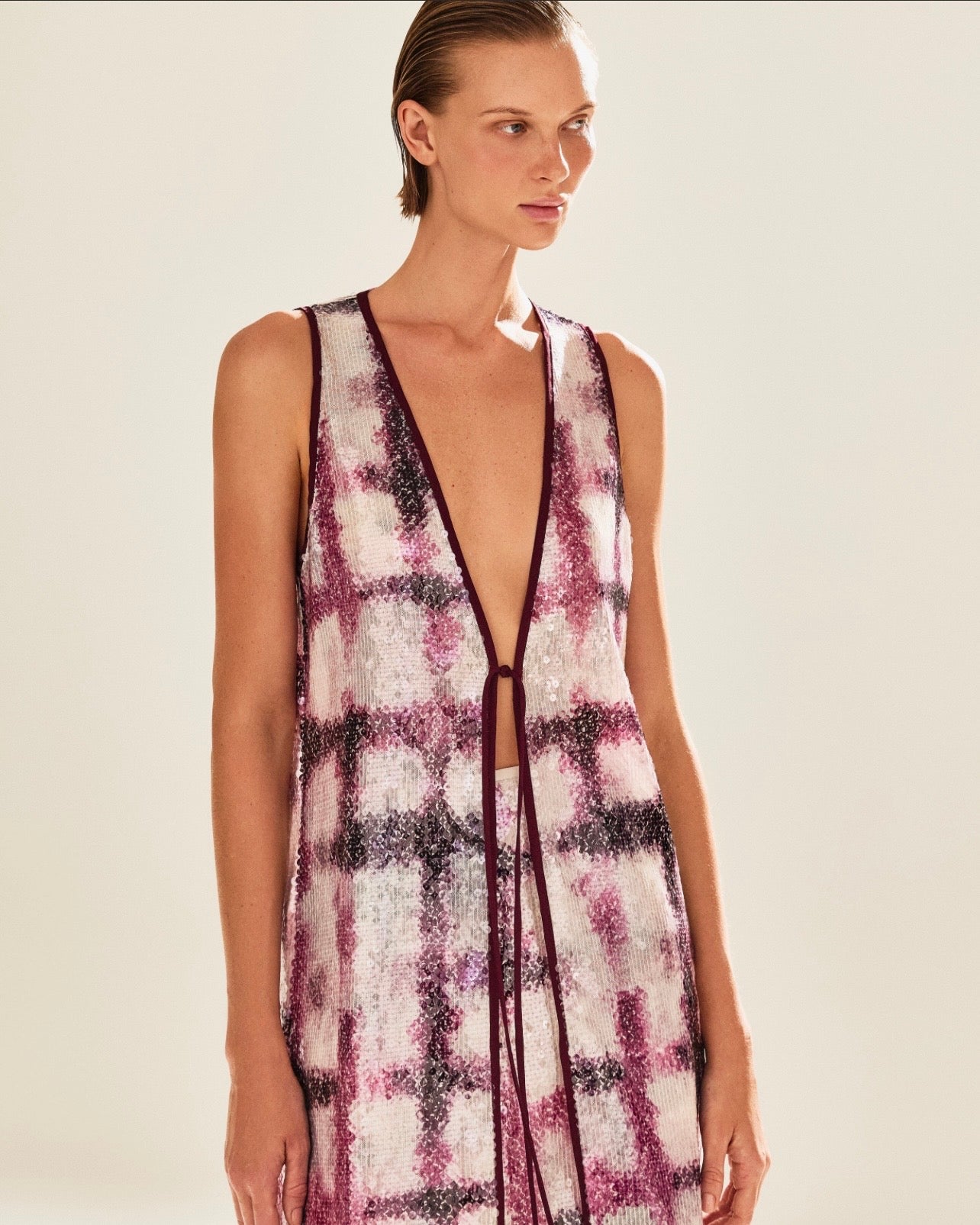 A TUNICA NYRA BERINGELA é a escolha perfeita para quem quer um toque de sofisticação no visual. Feita com um tecido especial em paetês, ela traz brilho e estilo para suas ocasiões especiais. Sinta-se confiante e elegante ao usar esta peça única!