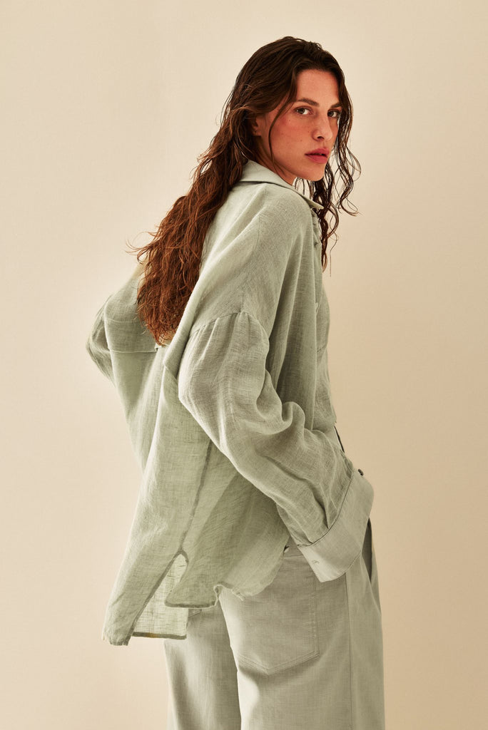 CAMISA DOMINIQUE GAZE LINHO VERDE CLARO